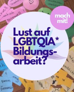 Du bist queer und willst dich aktiv für eine LGBTIQA*-freundlichere Gesellschaft einsetzen, queeren Schüler_innen Mut machen und Jugendliche über Queerfeindlichkeit aufklären?